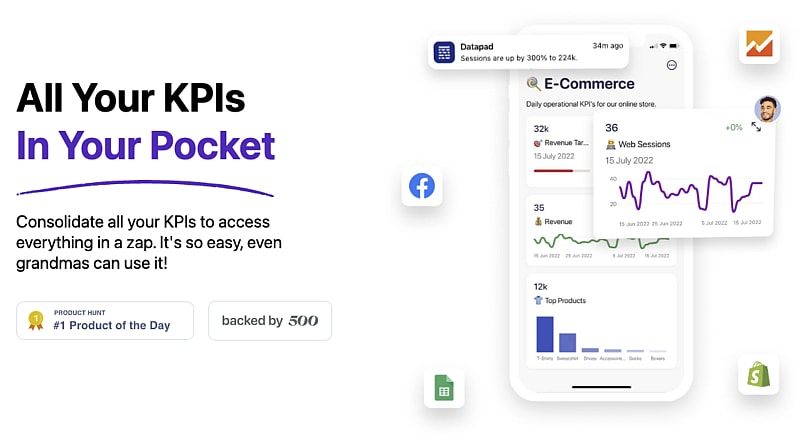 Datapad — это мобильная платформа для отслеживания KPI и создания информационных панелей, которая позволяет руководителям отделов продаж контролировать эффективность продаж прямо на ходу.