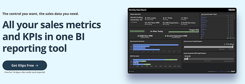 Klips by Klipfolio позволяет создавать пользовательские приборные панели продаж.