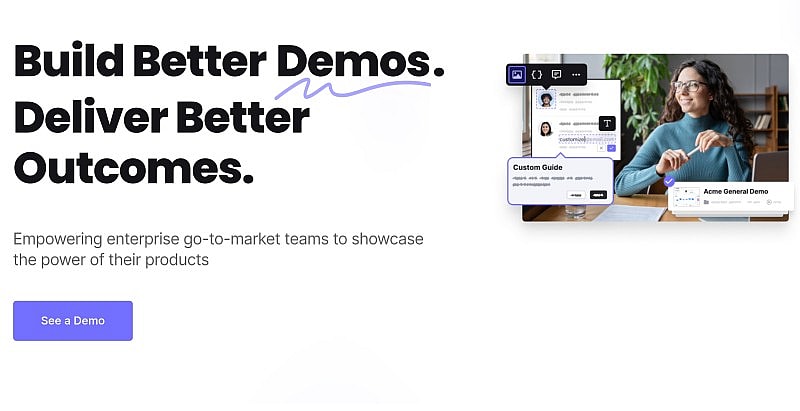 Создавайте интерактивные демонстрации, которые всегда выигрывают, с помощью Demostack — единого места для демонстрации вашего продукта с нулевыми зависимостями и полным контролем. Он позволяет создавать демонстрации продукта для разных этапов цикла сделки. Вы можете настраивать их по сегментам или вертикалям, чтобы улучшить их внешний вид.