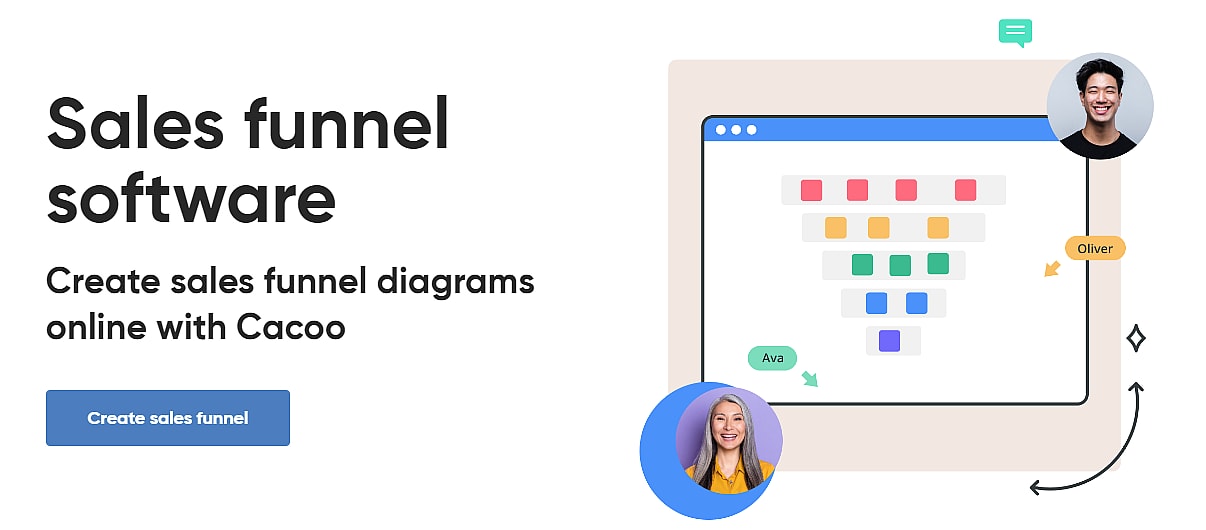 Одной из главных особенностей Cacoo является конструктор воронки, который позволяет легко создавать и настраивать воронки продаж без кодирования и технических знаний. Эта функция помогает экономить время и ресурсы, а также обеспечивает гибкость и возможности настройки. Еще одна ключевая особенность Cacoo — возможности автоматизации. С помощью Cacoo вы можете настроить автоматизированные рабочие процессы и триггеры, такие как кампании электронной почты и последующие сообщения, чтобы взаимодействовать с клиентами и лидами на каждом этапе. В целом, ценностное предложение Cacoo заключается в способности предоставить комплексное и удобное программное решение для воронки продаж, которое оптимизирует ваши процессы продаж и повышает конверсию.