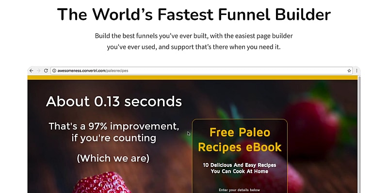 Convertri предоставляет вам конструктор страниц, мобильный редактор, сверхбыструю CDN, интегрированную корзину, сплит-тестирование и другие функции, чтобы вы могли построить лучшую воронку. С помощью редактора страниц вы получите непревзойденный контроль над своей воронкой продаж. Более того, функция динамической замены текста Convertri позволяет корректировать копию страницы, что может повысить конверсию. Он автоматически генерирует мобильную страницу и дает вам полный контроль над ее настройкой, добавляя подходящие элементы и регулируя положение.