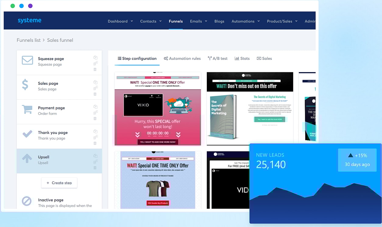 Systeme — это универсальный маркетинговый инструмент, который поможет вам создать воронки продаж, автоматизировать бизнес и создать инфраструктуру для поддержки вашего онлайн-бизнеса. Systeme ориентирован на предпринимателей, прост в использовании и доступен по цене.