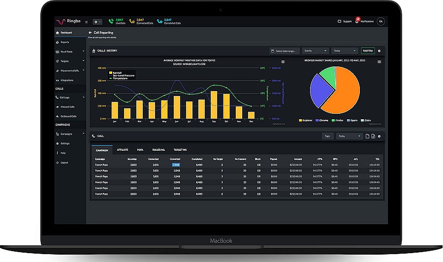 Расширьте свои маркетинговые кампании благодаря телекоммуникациям по требованию в 60+ странах. Кроме того, управляйте своими продавцами и покупателями с помощью расширенной маршрутизации, финансовых правил и кэппинга. Интеллектуальная автоматическая оптимизация потока звонков Ringba поможет вам максимально использовать потенциал каждого звонка. Раскройте новые возможности с помощью самого передового и быстрого аналитического механизма. Они использовали многолетний опыт работы в отрасли и технические знания, чтобы создать ценный набор инструментов для развития вашего бизнеса. Он также может отслеживать каждую мелочь о пользователях и помогать вам оптимизировать прибыль. Постройте свой маркетинговый бизнес с оплатой за звонок с помощью их инструментов, соблюдайте требования законодательства благодаря контролю за соблюдением в режиме реального времени и оставайтесь впереди конкурентов, используя самые современные отчеты и аналитику. Вы также можете фильтровать, сортировать, искать, сверлить и группировать данные так, как вам нужно, и получать мгновенные результаты с помощью превосходной отчетности.