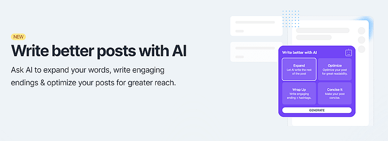Использование искусственного интеллекта в конечном итоге экономит время и усилия пользователя, независимо от его профессии. Что касается LinkedIn, то помимо вышеперечисленных преимуществ, инструменты искусственного интеллекта LinkedIn также помогут вам разработать контент-стратегию, автоматизировать сообщения, маркетинг и многое другое. Как и было обещано, здесь представлены лучшие инструменты AI LinkedIn для улучшения вашего путешествия по LinkedIn. Я разделил эти инструменты на 4 различные категории, чтобы упростить их для вас. Давайте погрузимся! Вы устали или перегружены работой по созданию постов в LinkedIn? ИИ может помочь вам в этом. Вот лучшие инструменты искусственного интеллекта для создания постов в LinkedIn, с которыми вы должны ознакомиться.