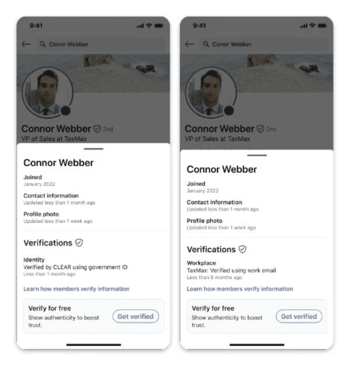 LinkedIn предлагает свою версию верификации бесплатно, но работает со сторонними поставщиками для проверки информации пользователей, в отличие от самостоятельной проверки.