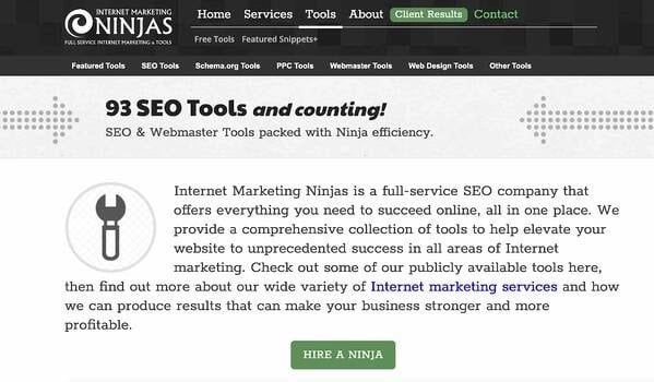 Internet Marketing Ninjas — компания, ориентированная на SEO, с множеством бесплатных инструментов для сравнения вашего сайта с конкурентами, оптимизации веб-страниц под определенные ключевые слова, создания мета-тегов и увеличения органического трафика на ваш сайт. Вот несколько примеров бесплатных инструментов интернет-маркетинга Ninja SEO, которыми вы можете воспользоваться: