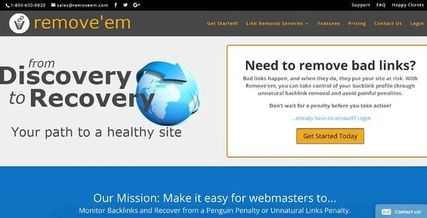 Цена: Вы можете заплатить единовременный взнос в размере 249 долларов за пожизненный тарифный план. Подписка на один сайт стоит 99 долларов в месяц. Агентский план на 10+ сайтов стоит 899 долларов в месяц. Если вы покупаете домен сайта, который уже использовался в прошлом, или восстанавливаете неудачную SEO-стратегию, вы можете обнаружить несколько проблемных обратных ссылок во время проведения аудита. Искусственные или неестественные ссылки могутсерьезно навредить вашему поисковому рейтингу. Remove’em поможет избавиться от этих ссылок. Этот инструмент может:
