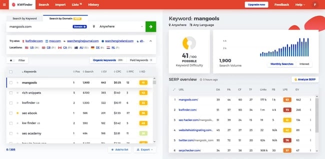 Ключевые слова. Оцените эффективность ключевых слов, ежемесячный объем поиска и сложность ключевых слов, по которым вы хотите ранжироваться.