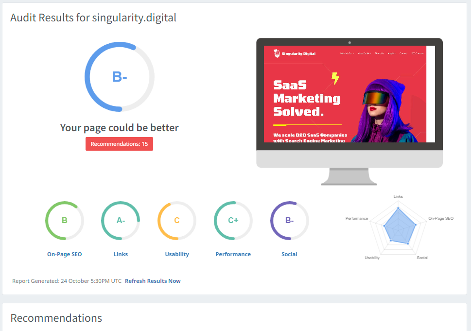 Бесплатная карта SEO Report Card от Singularity Digital позволяет проанализировать ваш сайт и определить, насколько он превосходит конкурентов. В обмен на ваш адрес электронной почты и несколько точек данных, SEO Report Card будет охватывать: