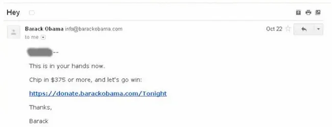 Все советы по электронной почте, которыми я поделился, были проверены только на моей относительно небольшой аудитории. Поэтому я решил закончить с советом, который был проверен на широких массах. В 2012 году Барак Обама и его предвыборная команда разослали сотни электронных писем, чтобы собрать средства на свою кампанию. Из 690 миллионов долларов, которые он собрал, большая часть была получена в результате прямых обращений по электронной почте. Но одно письмо, по данным ABC News, оказалось гораздо эффективнее остальных. И это было странное письмо. Письмо, которое привлекло больше всего денег, имело странную тему. В нем просто говорилось «Привет«. В самом письме читателю предлагалось сделать пожертвование, приводились все ожидаемые причины, но тема письма была другой. Это вызвало любопытство и заставило людей задуматься: неужели Обама говорит «Привет» только мне? Читателям было интересно, и они не могли не открыть письмо. По мнению ABC, это был«самый эффективный питч из всех». Поскольку больше людей открыли письмо, оно собрало больше денег, чем любое другое. Предвзятость, которую Обама использовал здесь, — это разрыв любопытства. Мы с большей вероятностью будем действовать, если наше любопытство возбуждено.