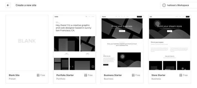 Далее вам будет предложено определить тип создаваемого сайта. Сайты-блоги — это один из вариантов, но если вы планируете завести блог, я рекомендую CMS Hub или WordPress.com. Обе эти программы предлагают мощные возможности для ведения блогов и гораздо более удобный для новичков интерфейс. Я был удивлен, увидев, что Webflow включает в себя различные рабочие пространства, чего я не встречал в других инструментах (за исключением CMS Hub, который позволяет вам иметь доступ к различным порталам). Это делает Webflow отличным выбором для больших команд, где у вас могут быть разные рабочие пространства в зависимости от прав и должностных обязанностей.
