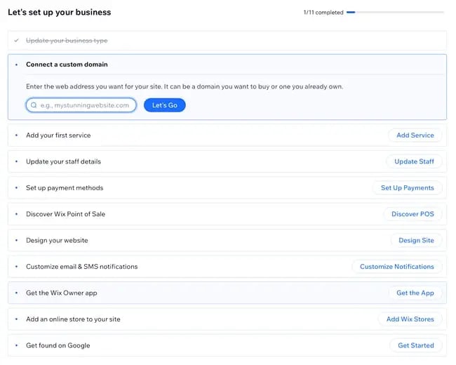 -И когда я зашел на панель управления, Wix создал контрольный список, который помог мне пройти пошаговый процесс настройки, включая регистрацию в системе Point of Sale. Это очень удобно и удобно для владельца местного бизнеса, но список может оказаться непомерно большим.
