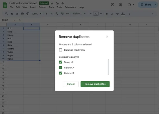Как удалить дубликаты в Google Sheets