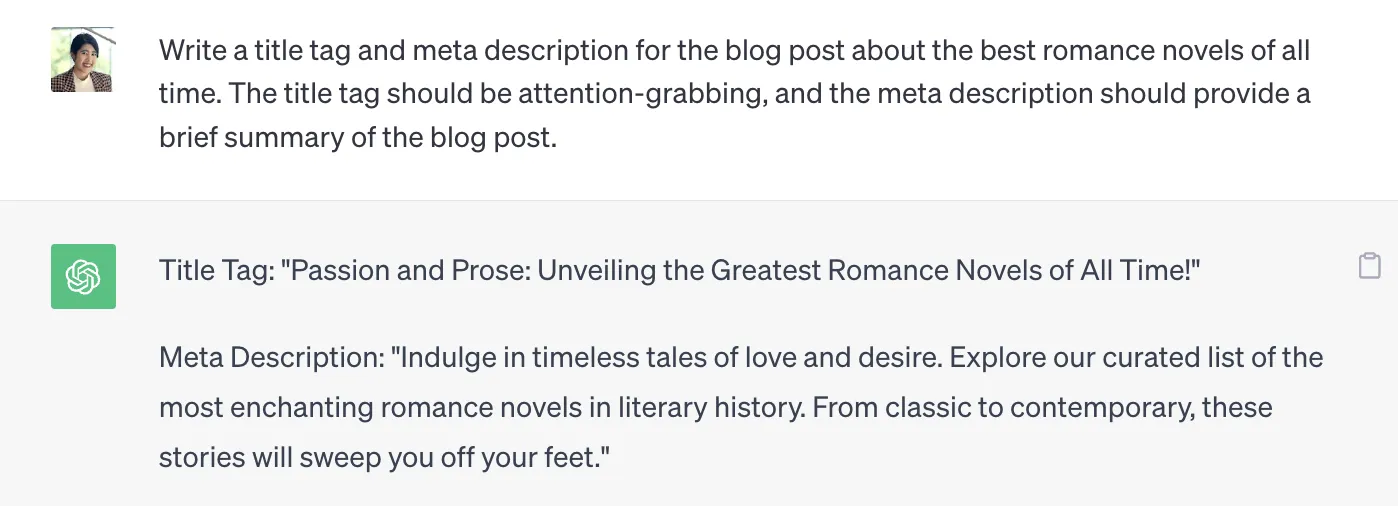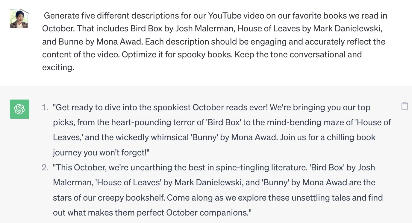 Вы также можете собрать отзывы о некоторых идеях или копиях, созданных ChatGPT, чтобы заполнить пробелы в вашем обучении. Например, если пользователи говорят, что посты в социальных сетях кажутся слишком продающими, вы можете добавить дополнительные инструкции, чтобы улучшить тон голоса.