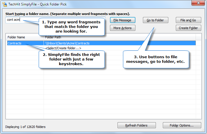 Хотя в Outlook не так много инструментов организации, как в других почтовых клиентах, вот один из них, предназначенный только для пользователей Outlook, который поможет вам тратить меньше времени на сортировку писем. SimplyFile добавляет панель инструментов (или «ленточную вкладку») в папку «Входящие» с различными настраиваемыми файлами, которая легко доступна, чтобы вы могли быстро регистрировать новые письма. Когда приходит письмо, просто перетащите его в соответствующую папку. Вы можете упорядочить как получаемые сообщения в папке «Входящие», так и отправляемые — их можно сохранять по мере отправки.