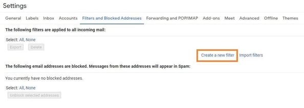 3. Выберите «Создать новый фильтр».