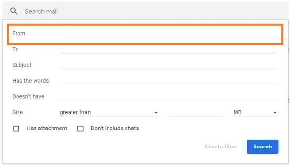 4. Добавьте конкретный адрес электронной почты или целый домен в поле «От».