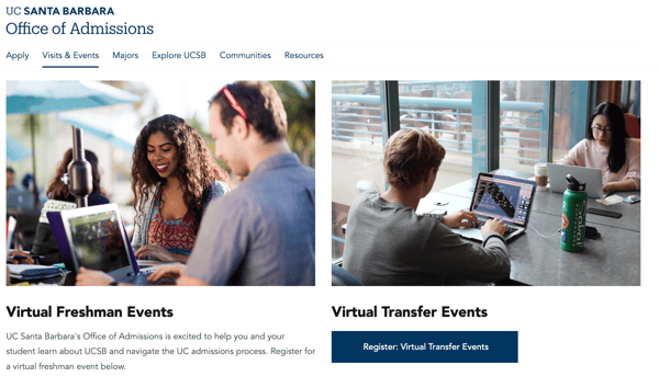 В отличие от статичных брошюр, вебинары предлагают интерактивную платформу, где слушатели могут задавать вопросы и получать немедленные ответы от консультантов приемной комиссии или преподавателей. Например, UC Santa Barbara проводит виртуальные мероприятия, чтобы помочь студентам «встретиться с сотрудниками и студентами UCSB, узнать о возможностях на кампусе, получить советы по заполнению заявления на поступление в UC и многое другое». Кроме того, они публикуют вебинары и заранее записанные видеоролики на своем канале YouTube, к которым студенты могут получить доступ в любое время.