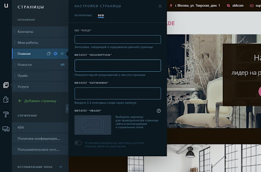 Понятное дело, к сайту можно подключить любой домен. SSL-сертификат бесплатный, добавляет автоматически. Есть возможность работать с Google Tag Manager, а также с пикселями ВКонтакте и Facebook. В общем, SEO-потенциал у сайтов на uKit хороший, разработчики многое для этого сделали.