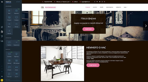 uKit – современный конструктор сайтов для бизнеса. Основная аудитория – предприниматели любых сфер деятельности. Рассчитан на новичков, а также разработчиков клиентских сайтов. Обе категории сэкономят время и средства. Конструктор недорогой. Обладает солидным объёмом готовых шаблонов под разные ниши бизнеса.