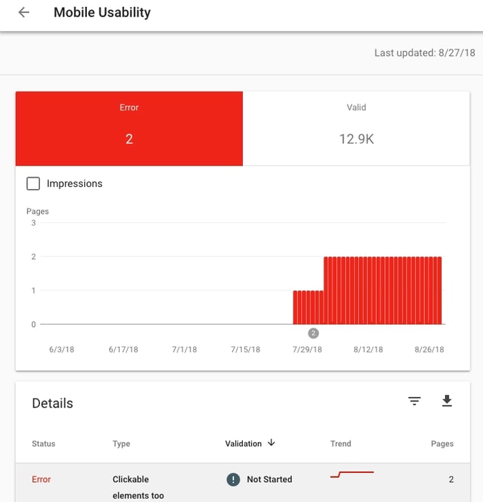 Прокрутите страницу вниз до поля «Подробности», чтобы узнать, какие ошибки вызывают проблемы с мобильным юзабилити и насколько часто они встречаются.