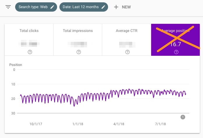 Средняя позиция не так уж полезна на макроуровне. Большинство людей беспокоятся, когда она повышается — но это недальновидно. Если страница или набор страниц начинают ранжироваться по дополнительным ключевым словам, средняя позиция обычно увеличивается; в конце концов, если вы не ранжируетесь по тем же или лучшим ключевым словам, что и существующие, ваша «средняя» позиция будет больше. Не стоит уделять этой метрике слишком много внимания.