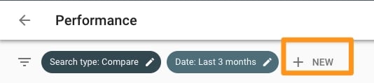 Нажмите кнопку «Новый» рядом с фильтром «Дата», чтобы добавить до пяти других типов фильтров: запрос, страница, страна, устройство и вид поиска.