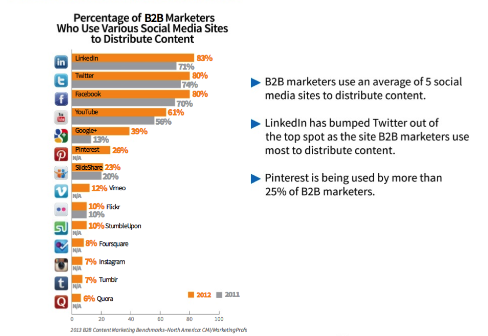 Исследование, проведенное Институтом контент-маркетинга и MarketingProfs, показало, что больше B2B-маркетологов используют LinkedIn, чем любую другую платформу.
