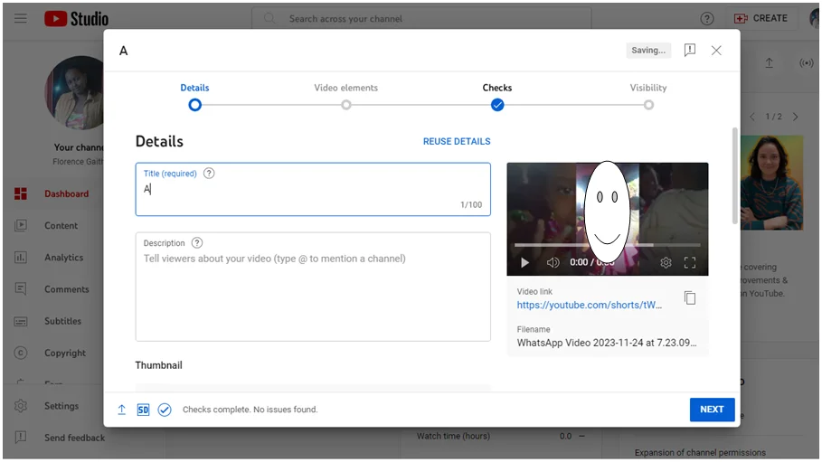 Чтобы убедиться, что ваше видео прошло этот этап, убедитесь, что короткое видео, которое вы собираетесь загрузить, соответствует правилам сообщества YouTube и политике авторского права. Если проблем не обнаружено, нажмите «NEXT»